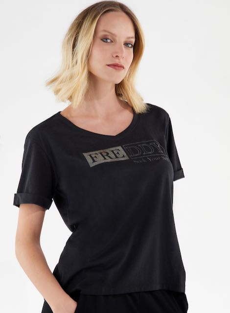 FREDDY SEEK YOURSELFがキラキラとアウトラインで前面を飾ったソフトカットTシャツ。